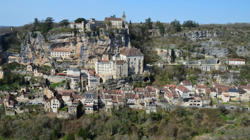Rocamadour is a village built right into the side of a cliff! It sits high above a river, with ancient buildings that seem to grow straight out of the rocky walls. People have been making spiritual journeys here since medieval times, drawn by its beautiful churches and holy places.